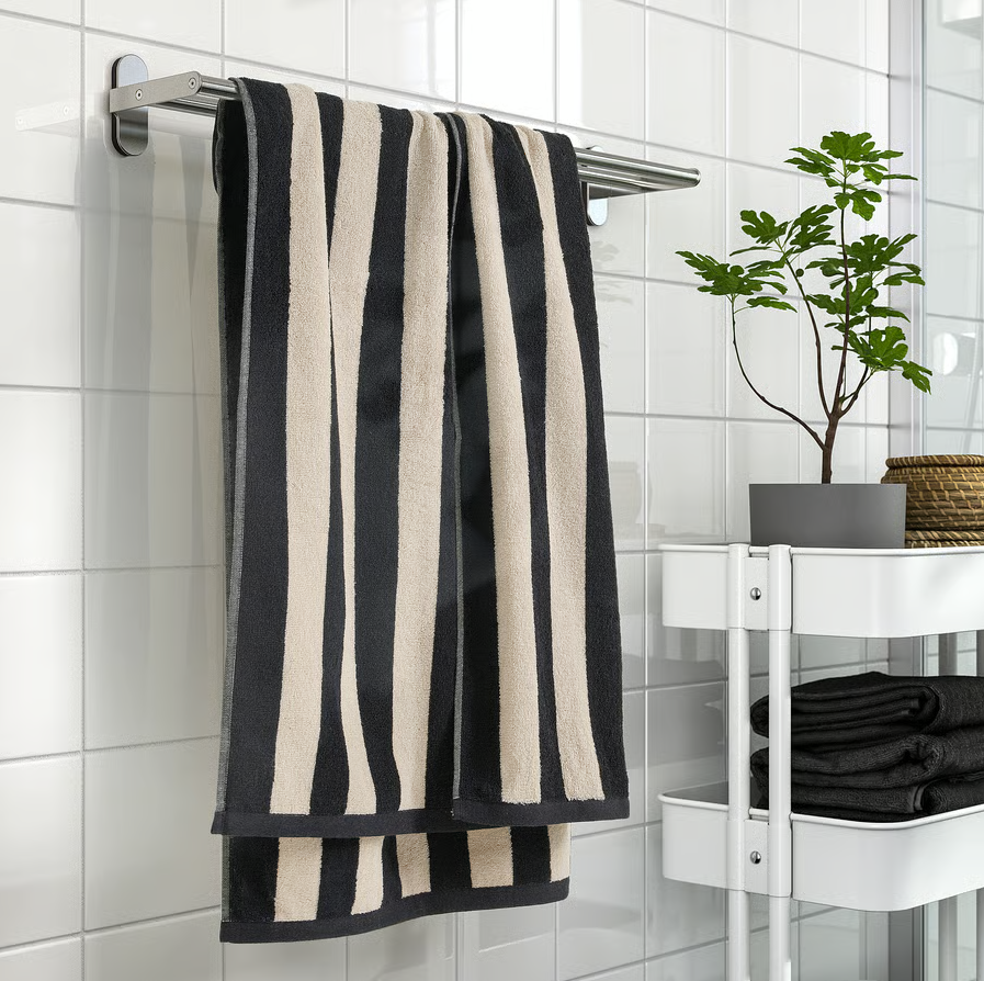 The colourful stripes pair up perfectly with solid-coloured VÅGSJÖN towels.